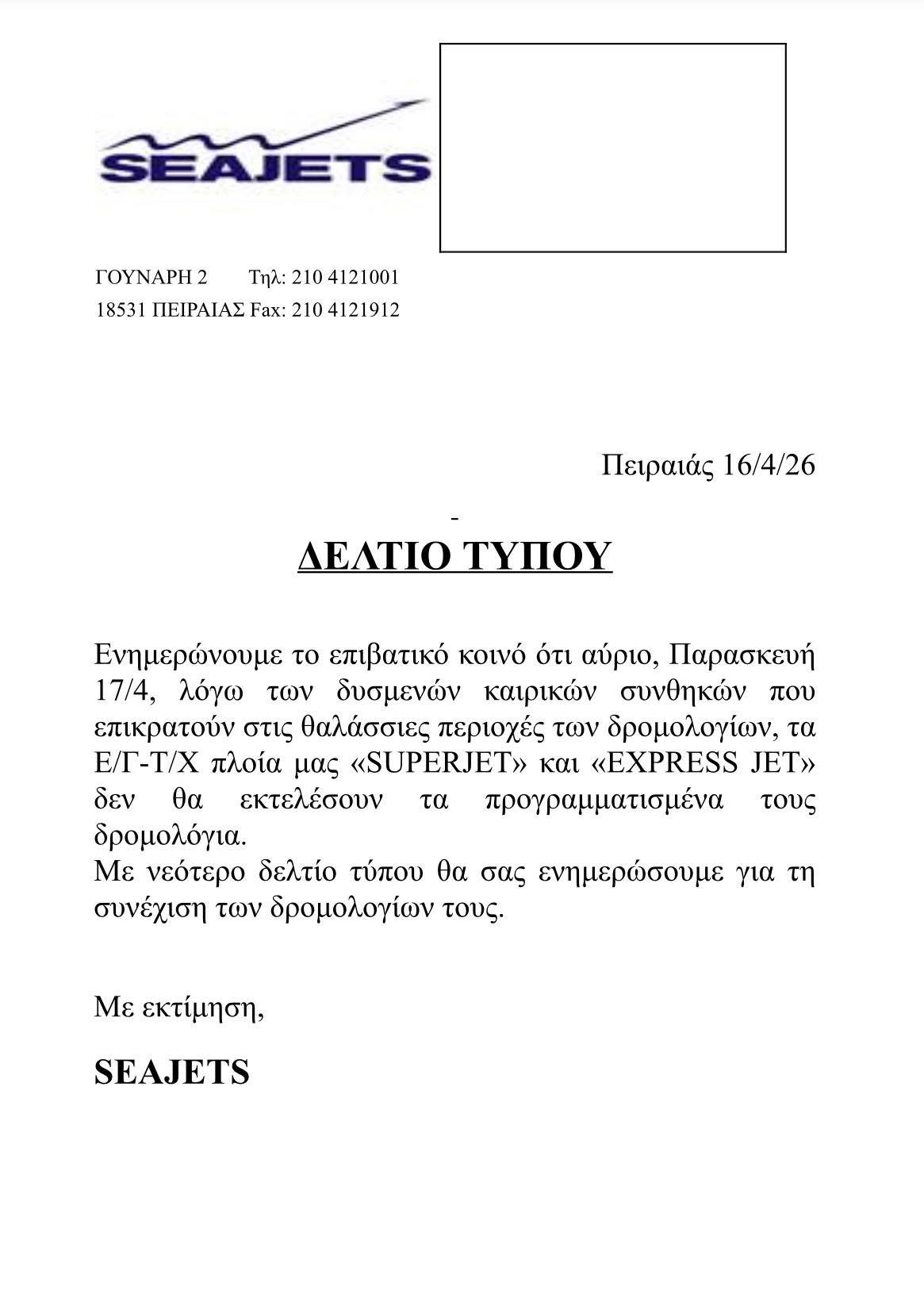 Ανεκτέλεστα θα παραμείνουν τα δρομολόγια των EXPRESS JET & SUPERJET στις 17/4