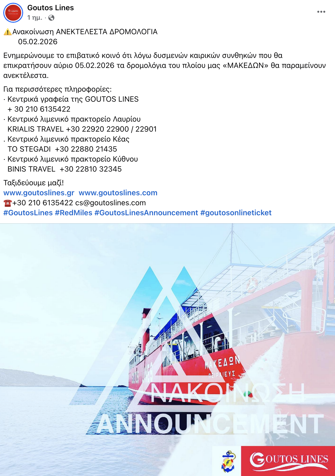 Δεν θα εκτελέσει δρομολόγια το ΜΑΚΕΔΩΝ στις 5/2 εξαιτίας καιρικών συνθηκών