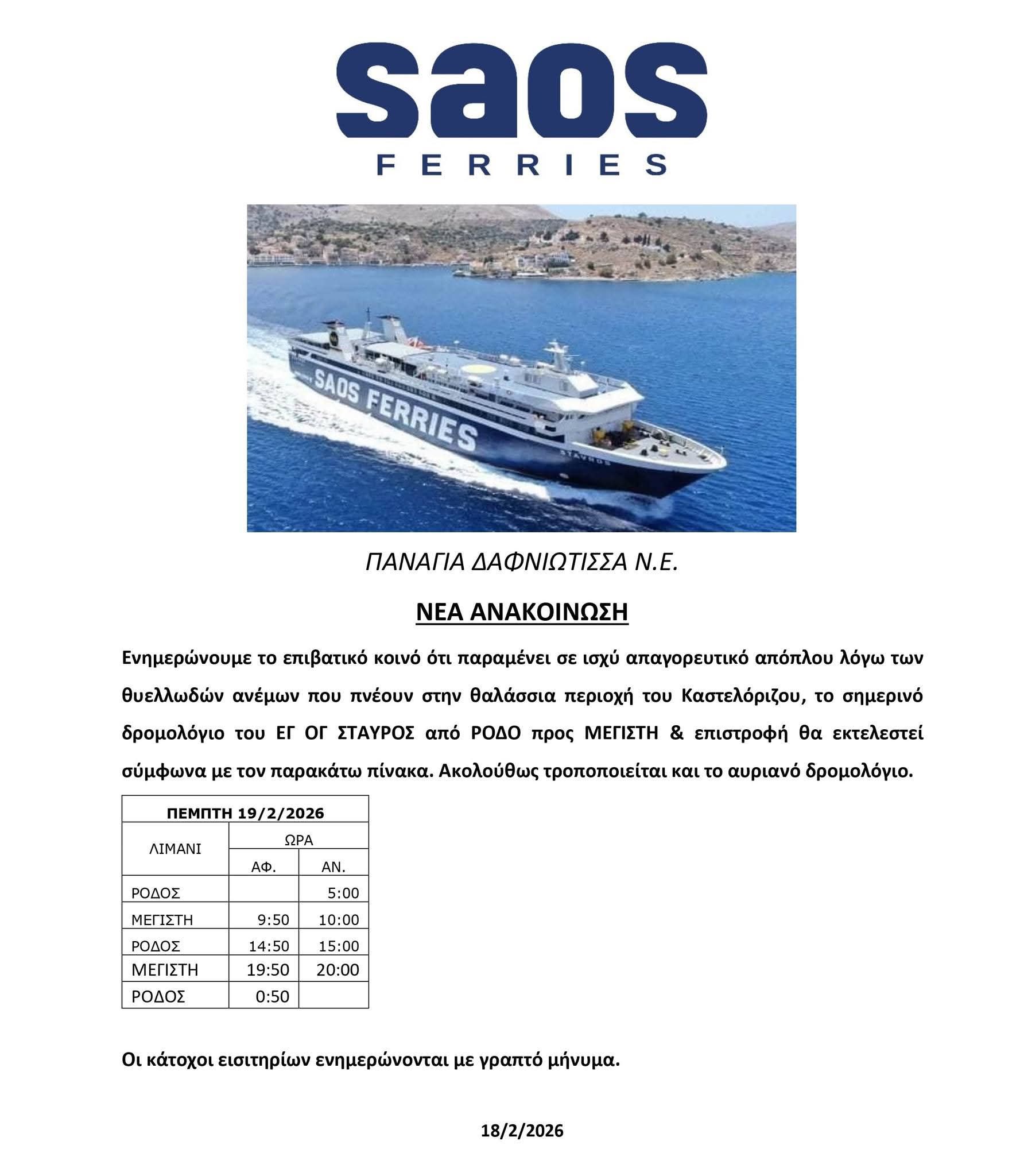 Διαμόρφωση δρομολογίου ΣΤΑΥΡΟΣ την Πέμπτη 19/2