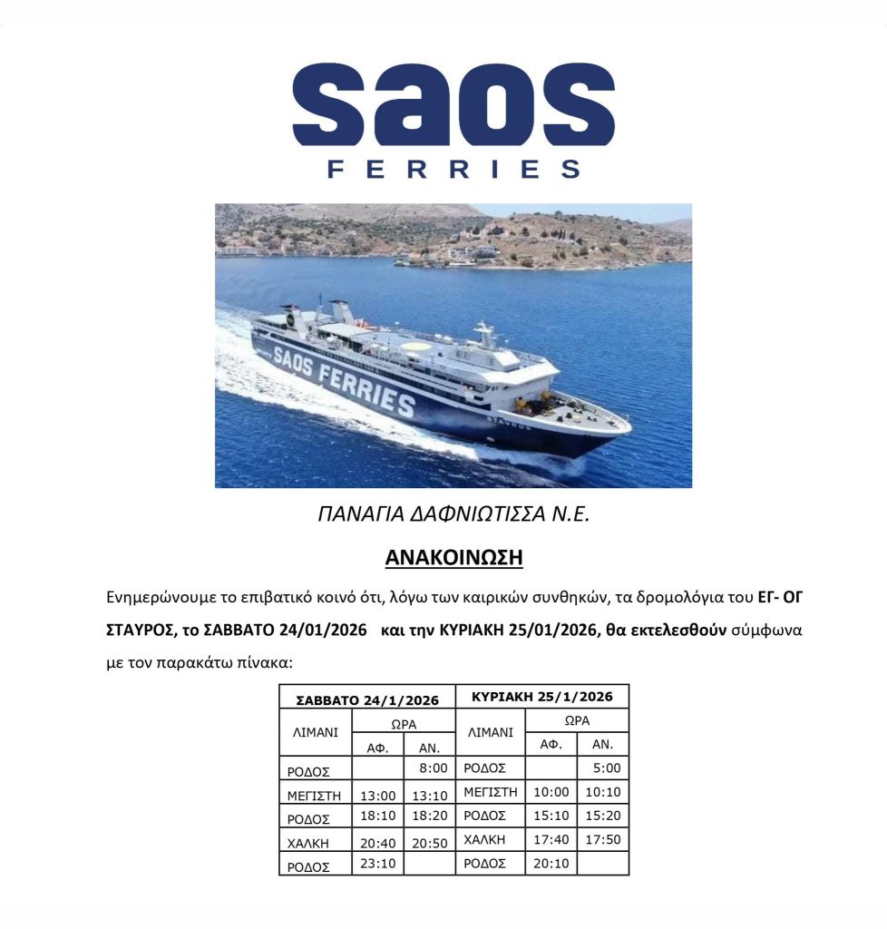 Διαμόρφωση δρομολογίων ΣΤΑΥΡΟΣ στις 24/1 & 25/1