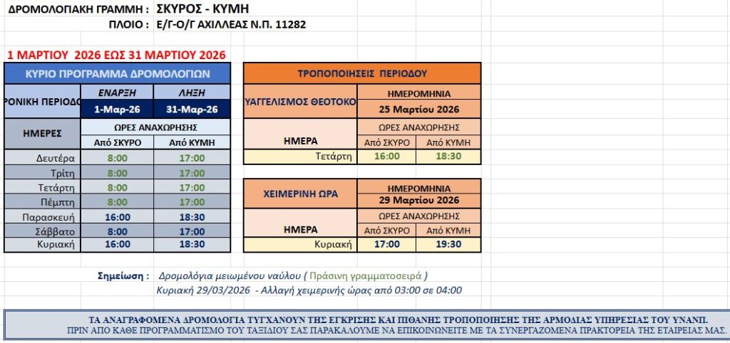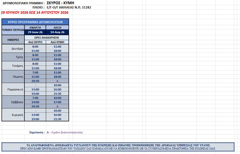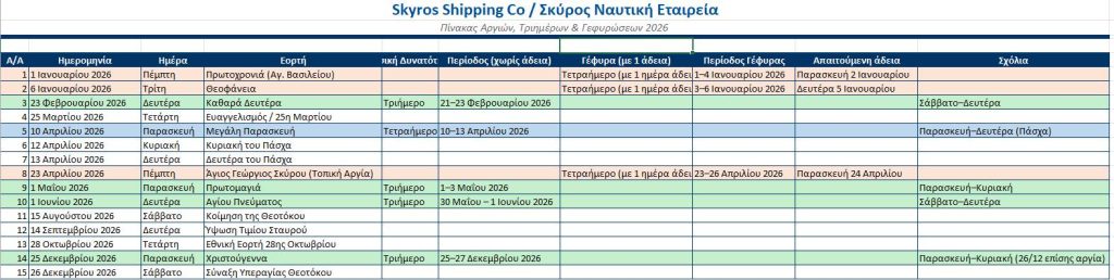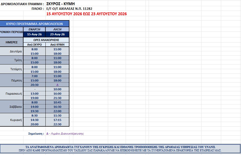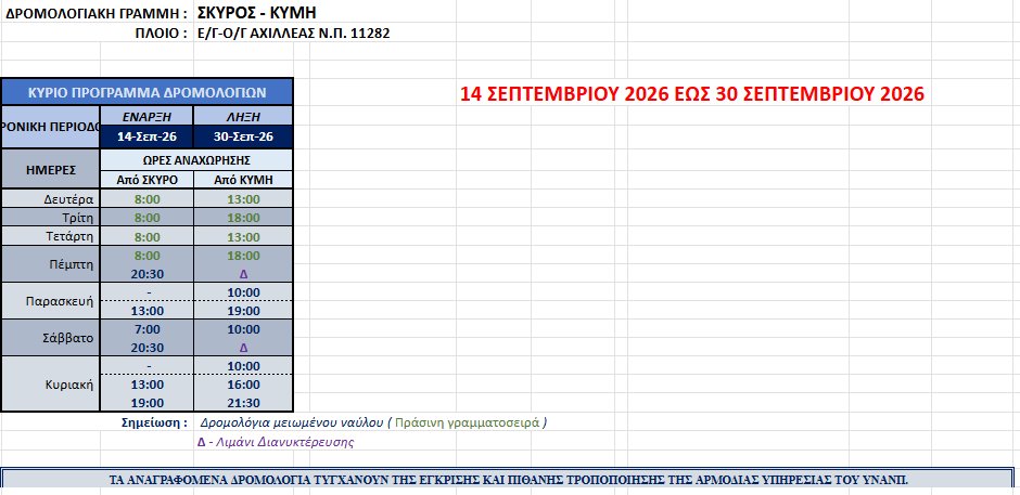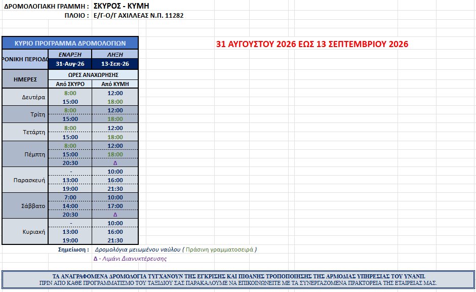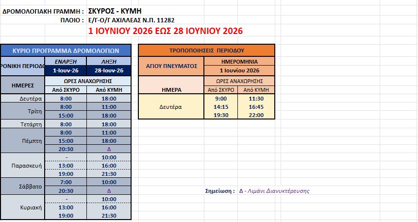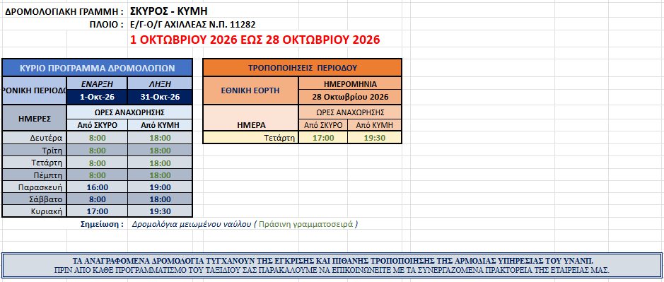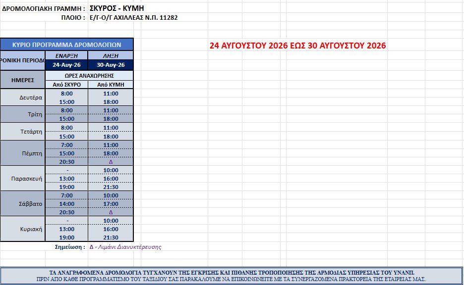 Δύο και πλέον μήνες πριν το τέλος του 2025, η Σκύρος Ναυτική Εταιρεία ανακοινώνει έγκαιρα όλα τα δρομολόγια μέχρι και τον Οκτώβριο του 2026!