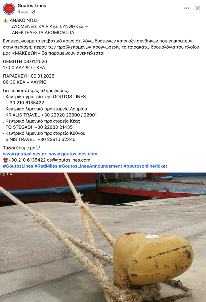 Ενημέρωση δρομολογίων ΜΑΚΕΔΩΝ λόγω απαγορευτικού απόπλου