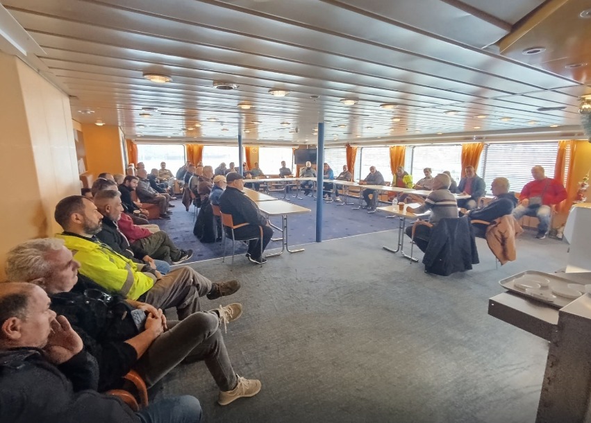 Ο ξεσηκωμός του κλάδου μας χθες στα πλοία της Αδριατικής, σήμερα στα πλοία RO/RO είναι απτό δείγμα ότι μέσα στα καράβια γεννιέται ένα μαζικό-ενωτικό-μαχητικό μπλοκ το οποίο είναι αποφασισμένο να διεκδικήσει αγωνιστικά λύσεις στα άλυτα, συσσωρευμένα και οξυμένα προβλήματα.