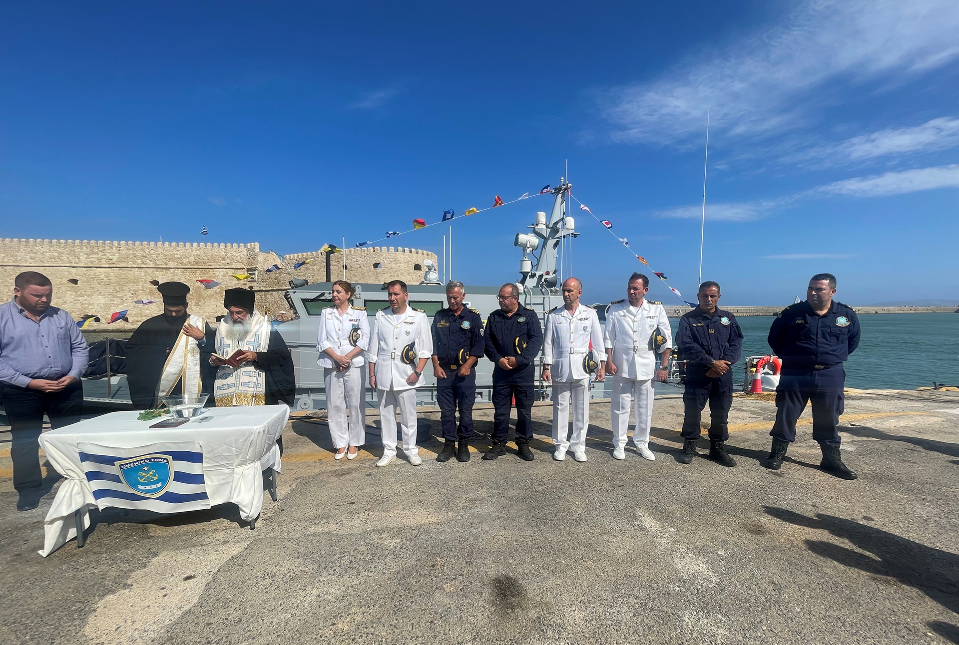 Την τελετή τέλεσε ο Σεβασμιότατος Αρχιεπίσκοπος Κρήτης κ.κ. Ευγένιος, ο οποίος ευχήθηκε το νέο μέσο να είναι καλοτάξιδο και εξέφρασε την βεβαιότητα ότι θα ενισχύσει ουσιαστικά την επιχειρησιακή ικανότητα του Λιμεναρχείου Ηρακλείου.