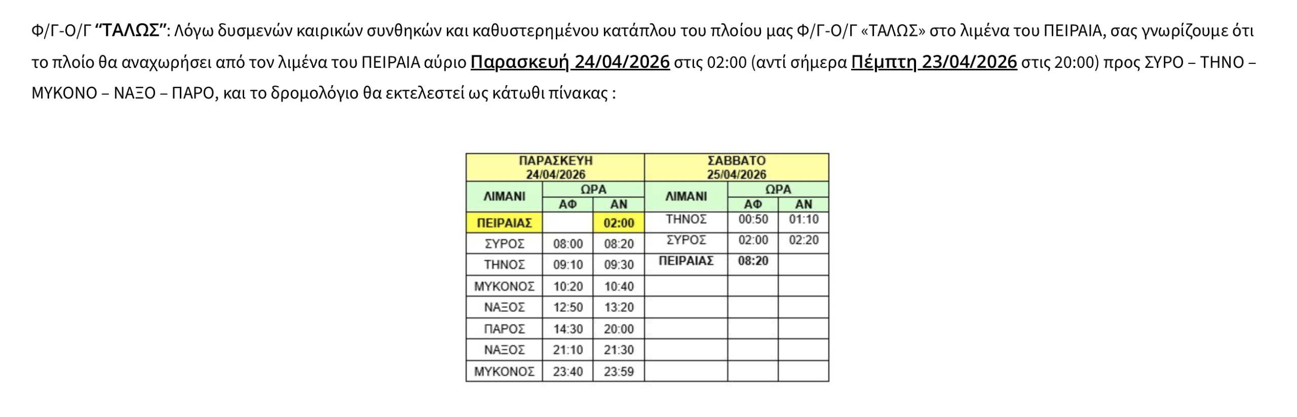 Τροποποίηση δρομολογίου του ΤΑΛΩΣ