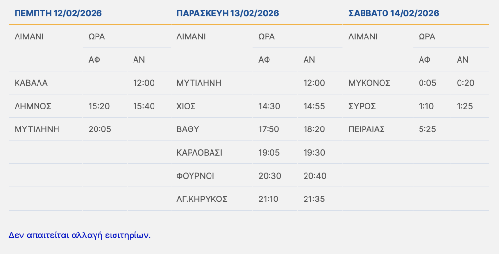 Λόγω δυσμενών καιρικών συνθηκών, τα δρομολόγια του BLUE STAR PAROS, από την Τετάρτη 11/02/2026, θα διαμορφωθούν ως ακολούθως: