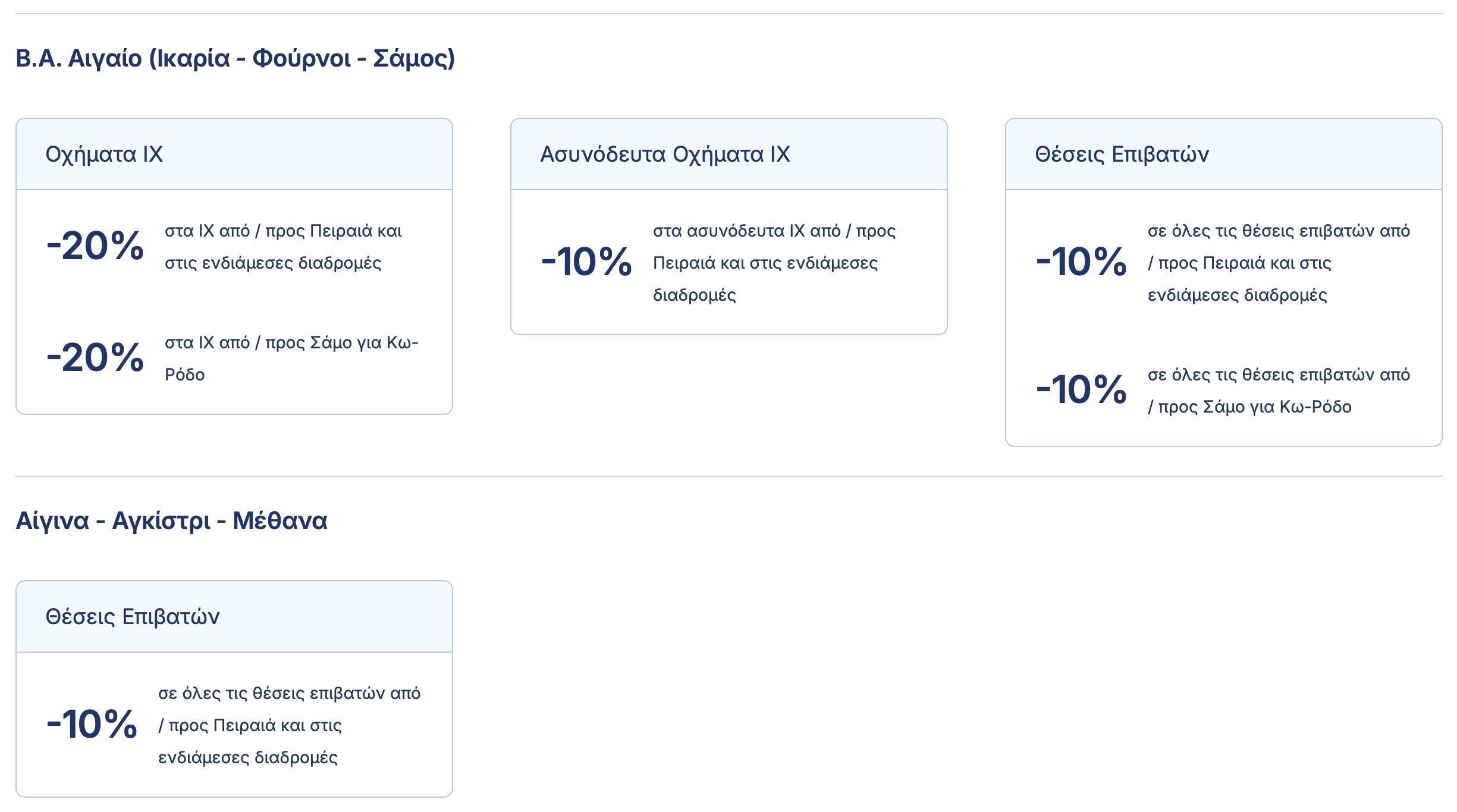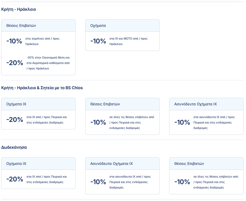 Στις γραμμές Κυκλάδων, Σαρωνικού και Ηρακλείου, προς το παρόν, οι εκπτώσεις παρέμειναν οι ίδιες που ίσχυαν και παλαιότερα.