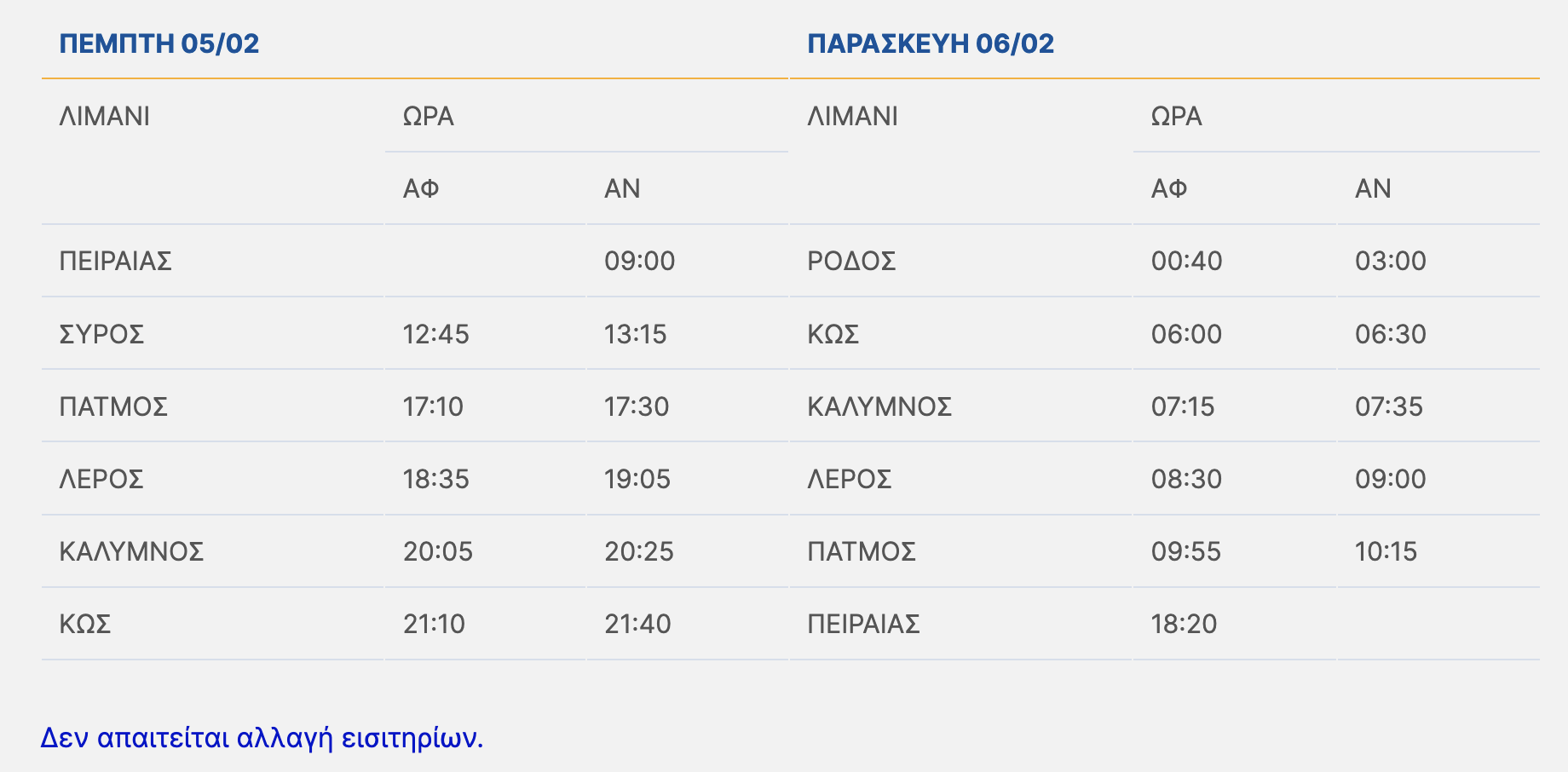 Δεν απαιτείται αλλαγή εισιτηρίων.