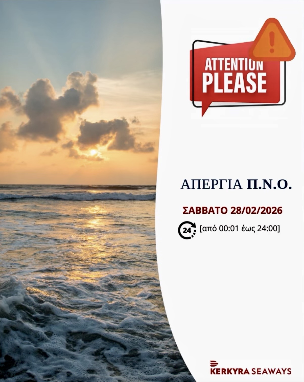 KERKYRA SEAWAYS: Χωρίς δρομολόγια στις 28/2 εξαιτίας 24ωρης απεργίας της ΠΝΟ