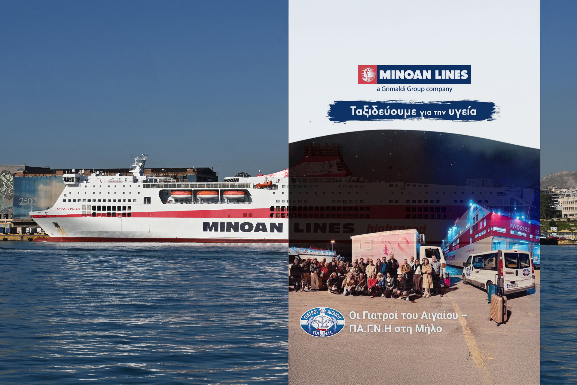 Η MINOAN LINES, μέλος του Ομίλου Grimaldi, συνεχίζει με συνέπεια και υπευθυνότητα για δέκα συναπτά έτη να υποστηρίζει το έργο των «Γιατρών του Αιγαίου – ΠΑ.Γ.Ν.Η.».