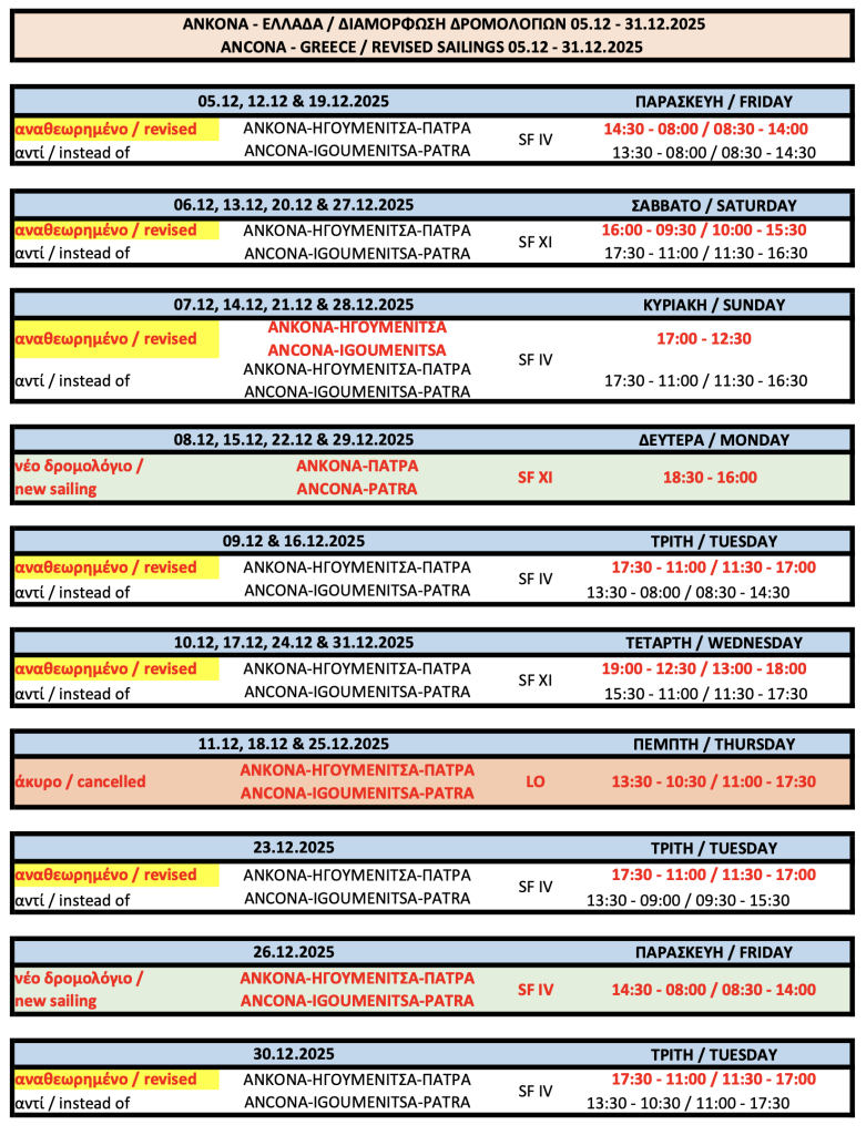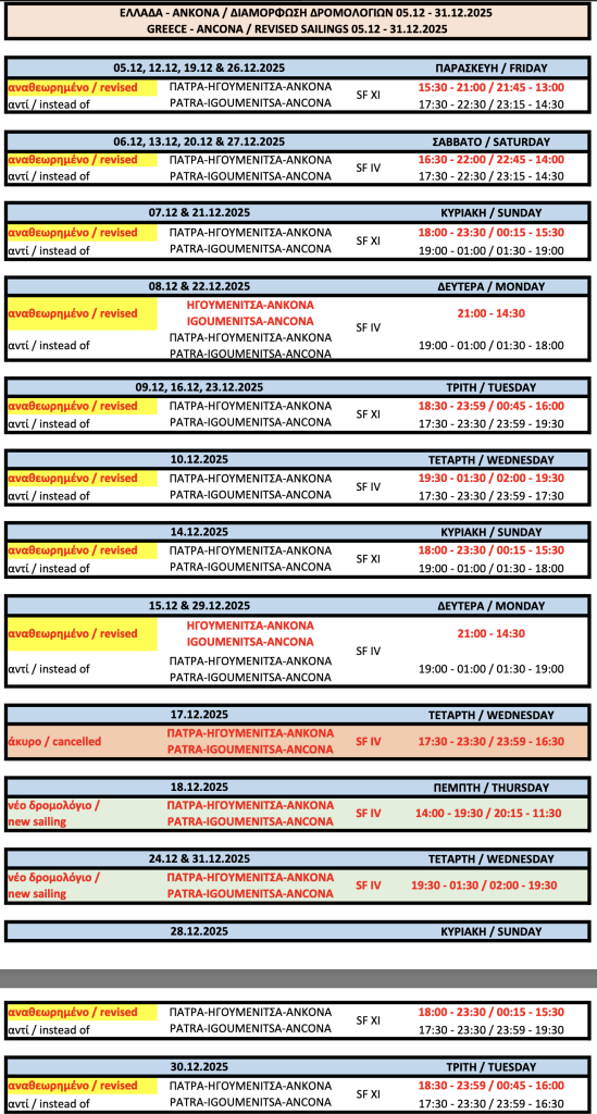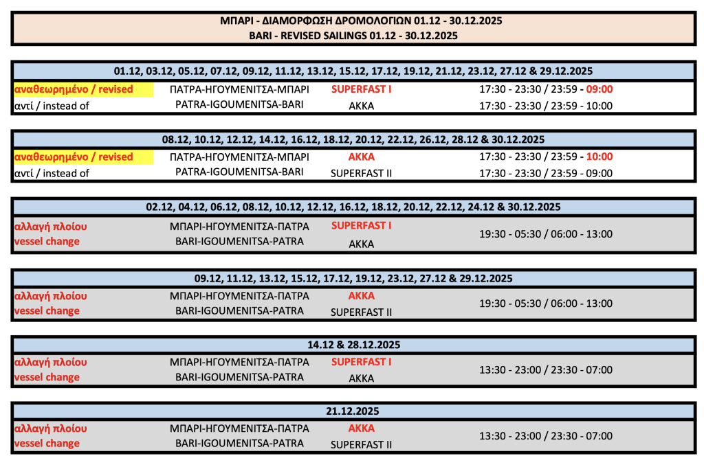 SUPERFAST FERRIES: Διαμόρφωση δρομολογίων Αδριατικής για τον Δεκέμβριο