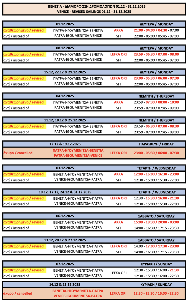 Τροποποίηση στο δρομολόγιο του AKKA από Βενετία το